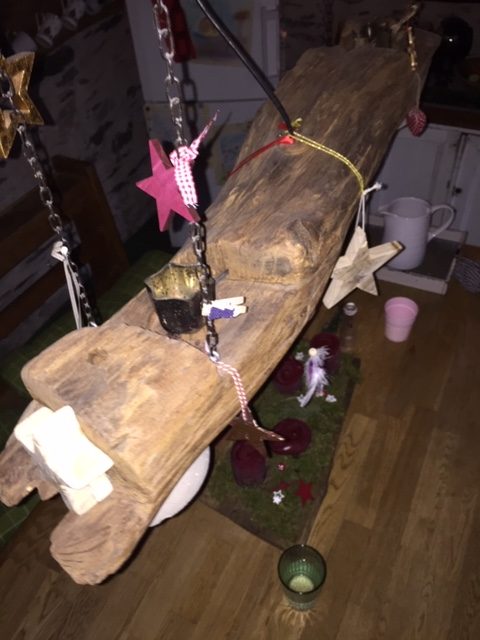 Deckenlampe gefertigt aus einem alten Eichenbalken.