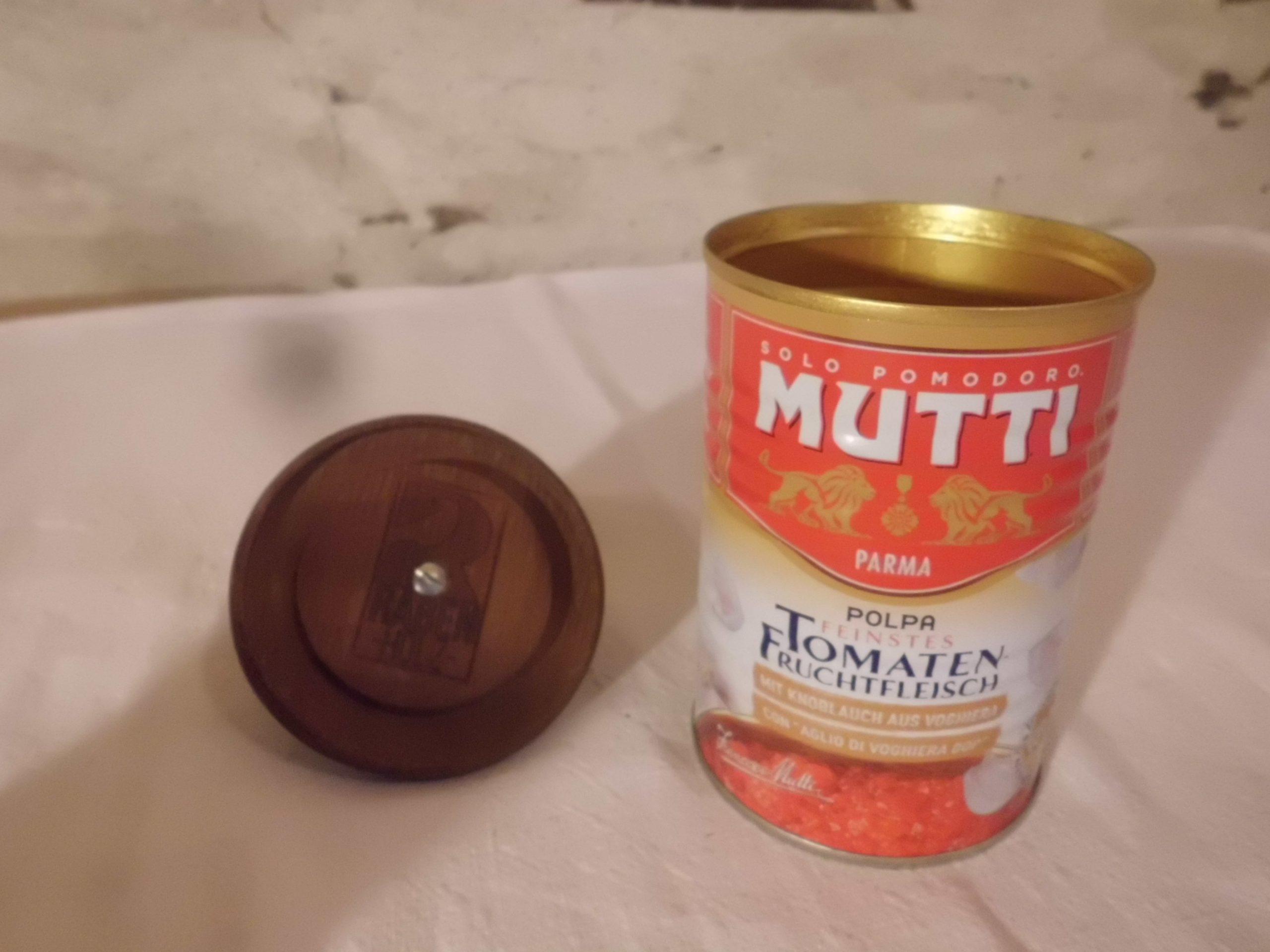 Maße ca. (H/Durchmesser): 4cm (mit Dose 15cm) / 8cm
