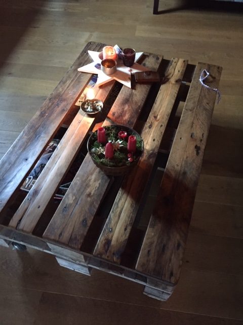 2 Europaletten (unbehandelt), geschliffen, obere Lage 2 mal mit Hardwachsöl behandelt