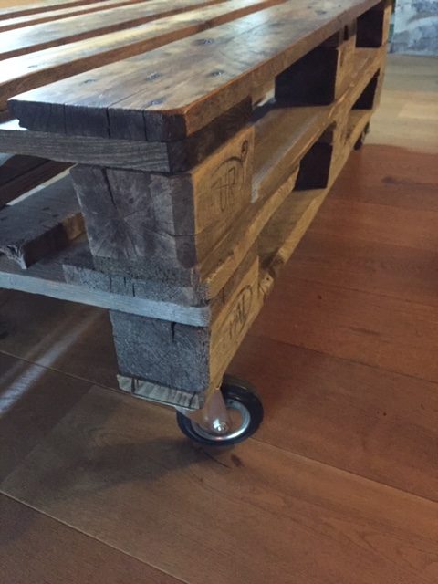 2 Europaletten auf Rollen.