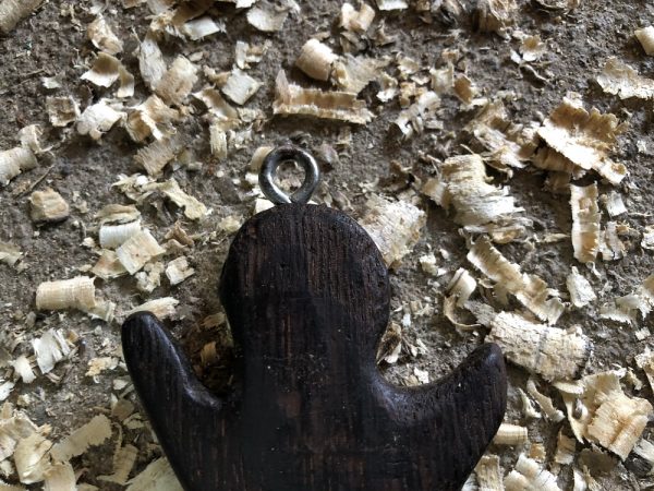 Schlüsselanhänger aus Eiche (Starke) mit Metallöse.