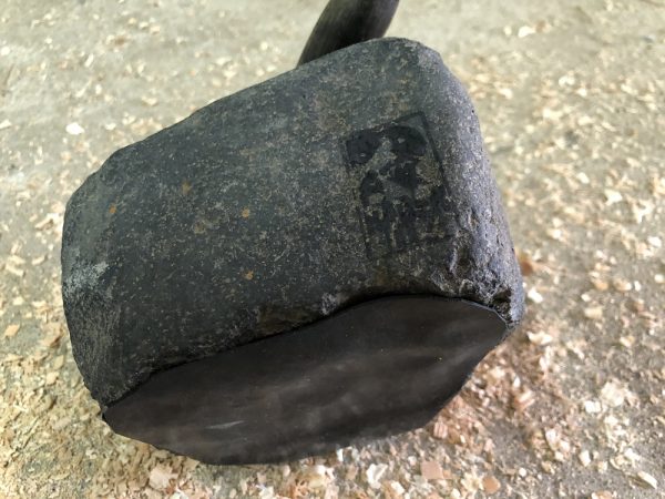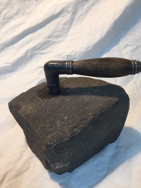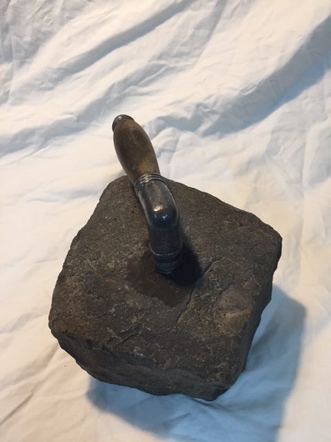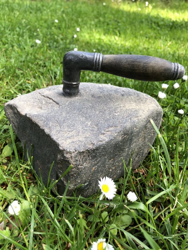 Aus Grauwacke mit einbetoniertem alten Türgriff ca. 4 kg schwer.